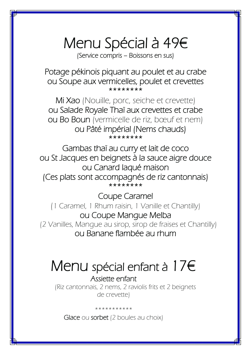 Venez déguster nos plats typiquement asiatique avec nos cartes richement variées, ainsi que nos menus adaptés à chaque instant.